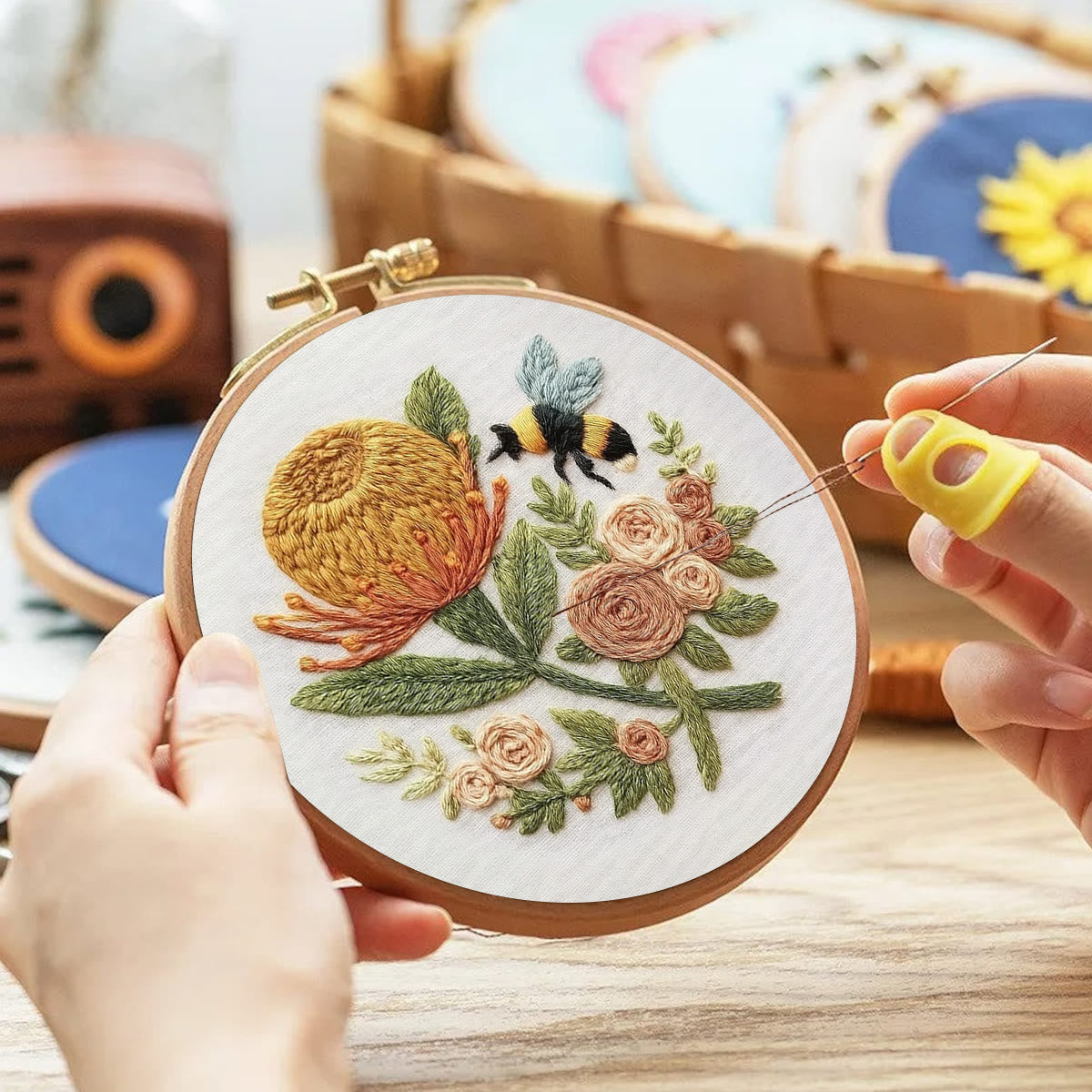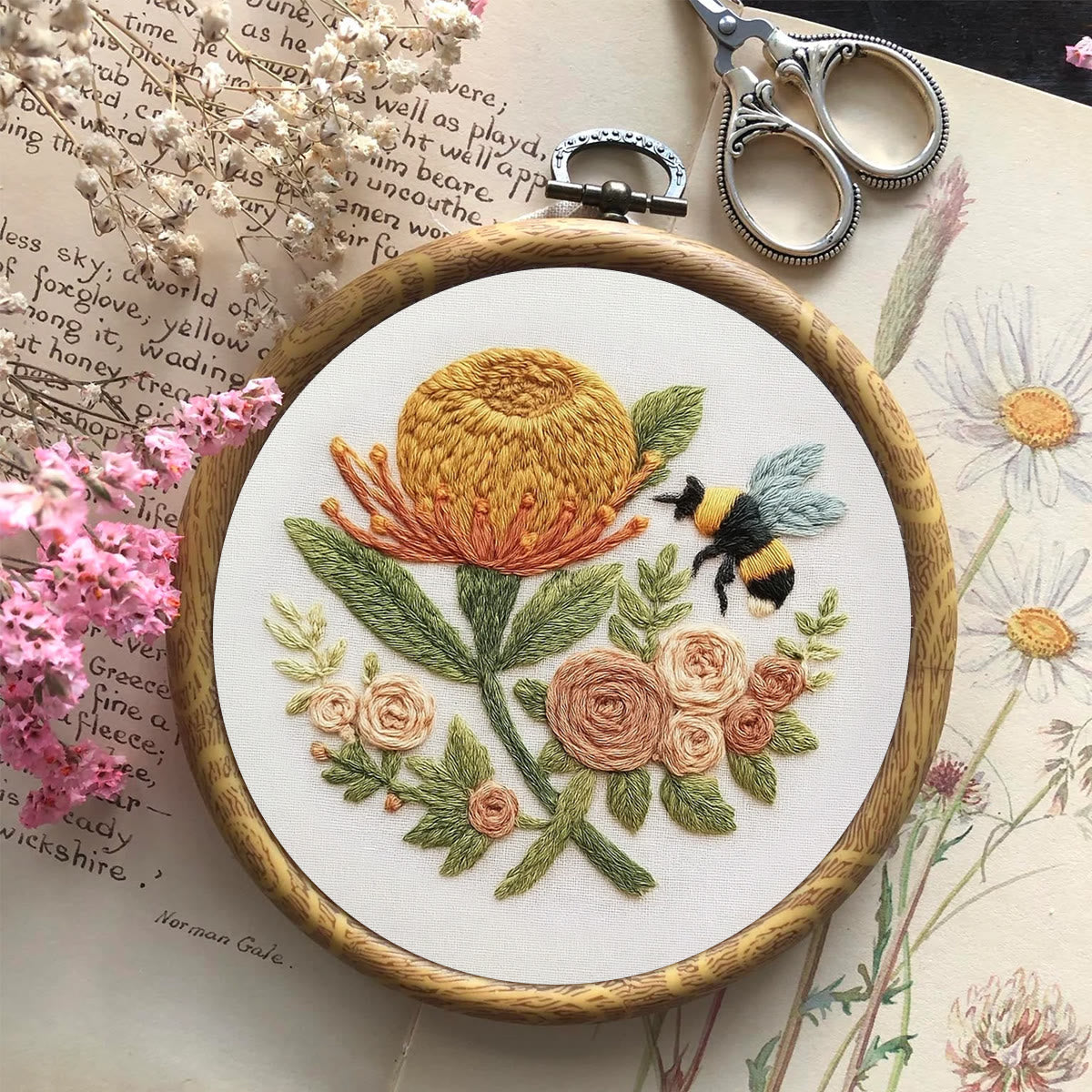 Rubbyoo Embroidery Kit - Charming Flowers With Bee | Great Room Decor