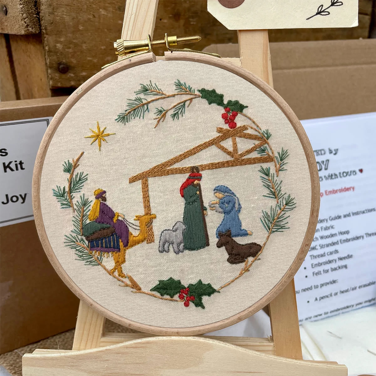 Rubbyoo Embroidery Kit - Christmas Nativity | Diy Christmas Wall Decor | Easy Needlework For Beginner