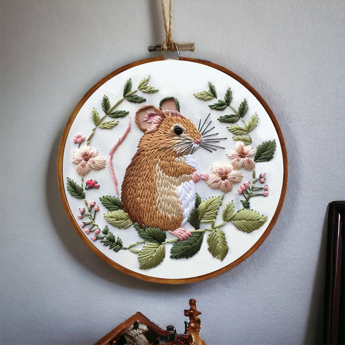 Rubbyoo Embroidery Kit - Floral Mouse | Stitiching Needlework Craft