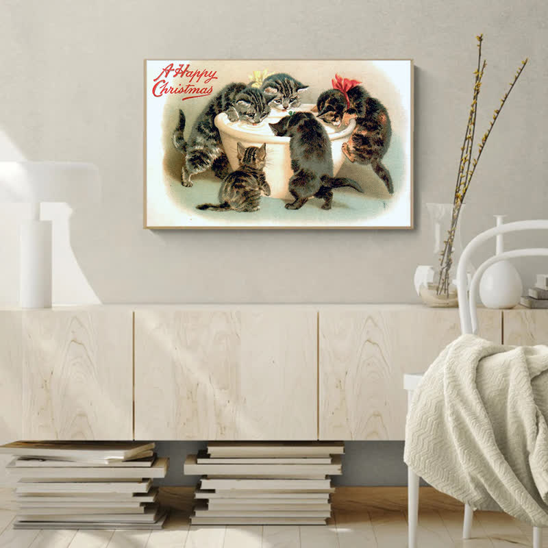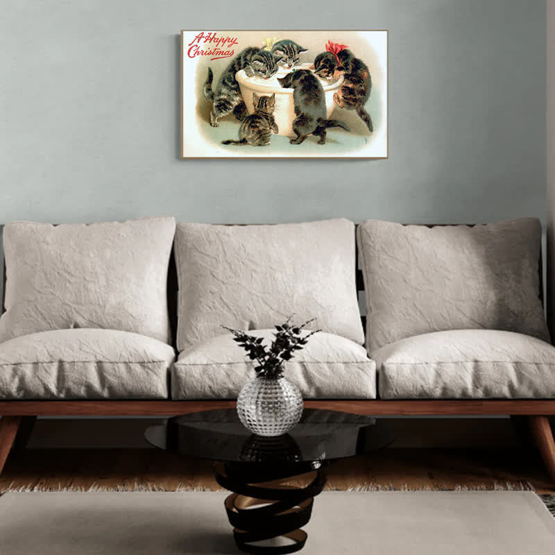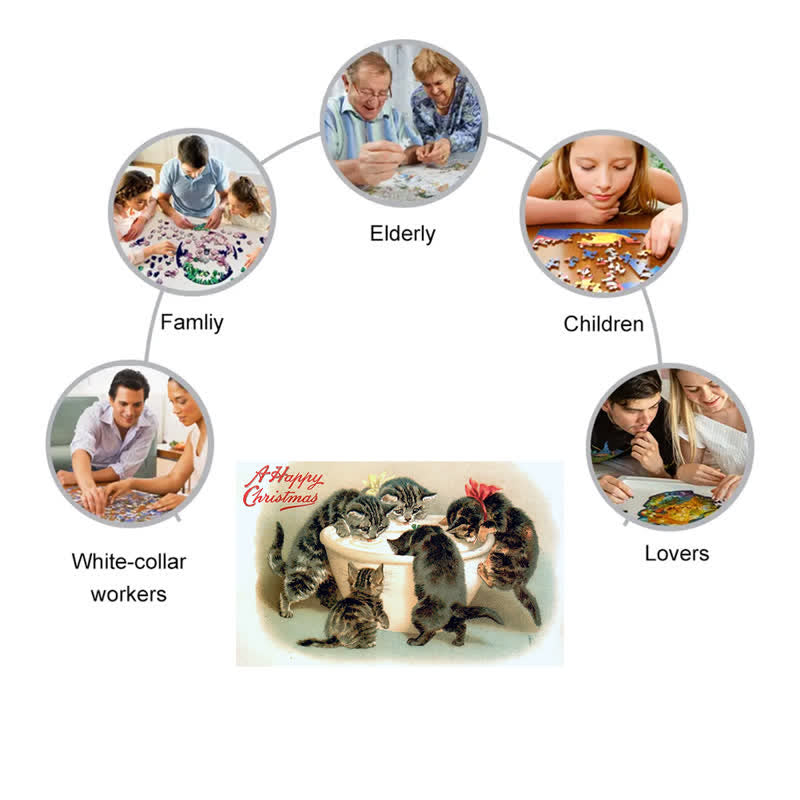 Rubbyoo Christmas Cats Old Antique - Wooden Jigsaw Puzzle