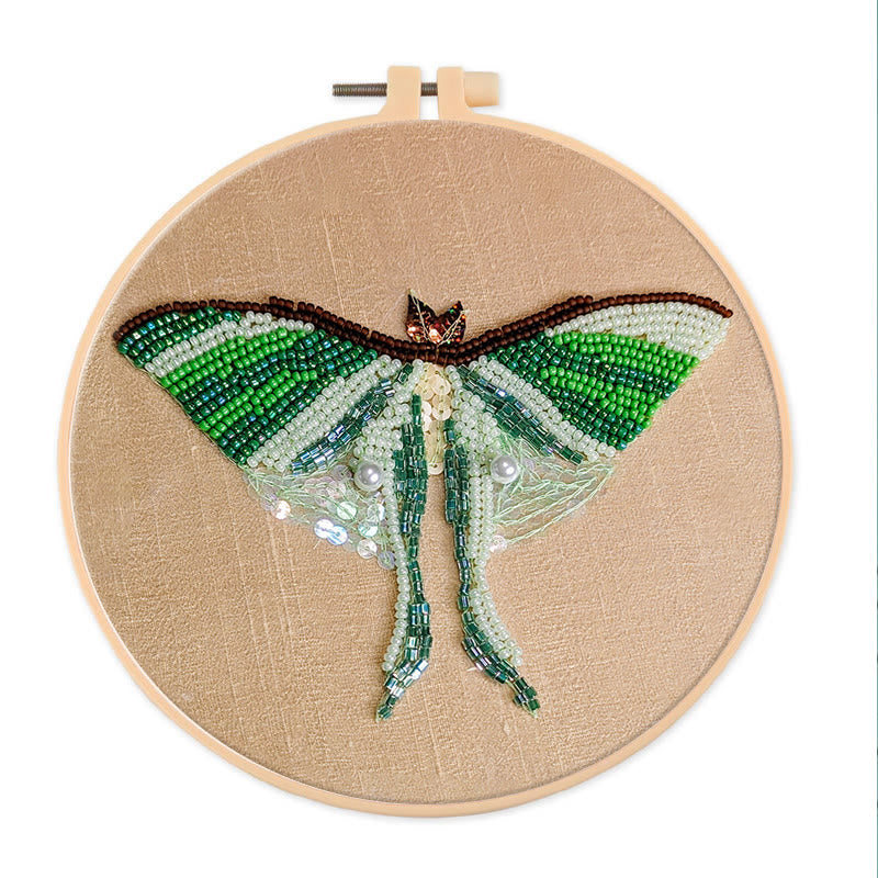 Rubbyoo Bead Embroidery Kit - Green Luna Moth | Exquisite Handmade Craft | Nice Home Decor