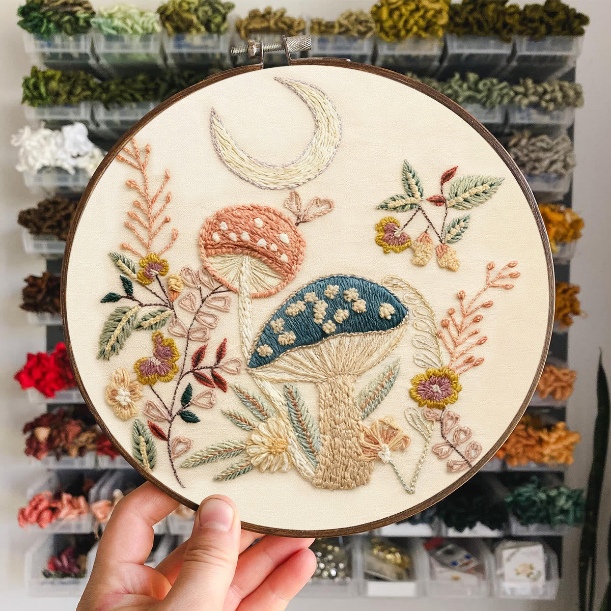 Rubbyoo Embroidery Kit - Mushroom With Moon | Diy Hoop Art | Perfect Needle Craft For Beginner
