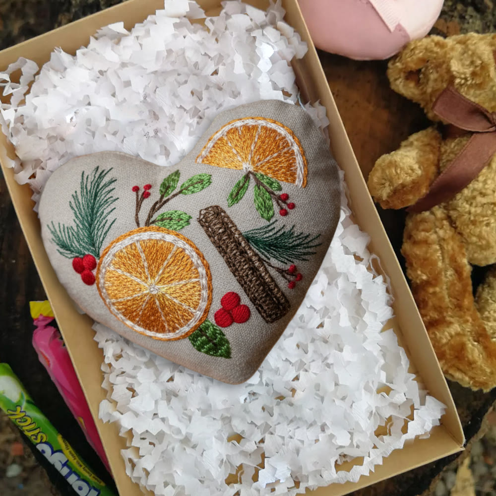 Rubbyoo Heart Embroidery Kit - Orange And Spices | Christmas Tree Ornament | Nice Gift For Friend