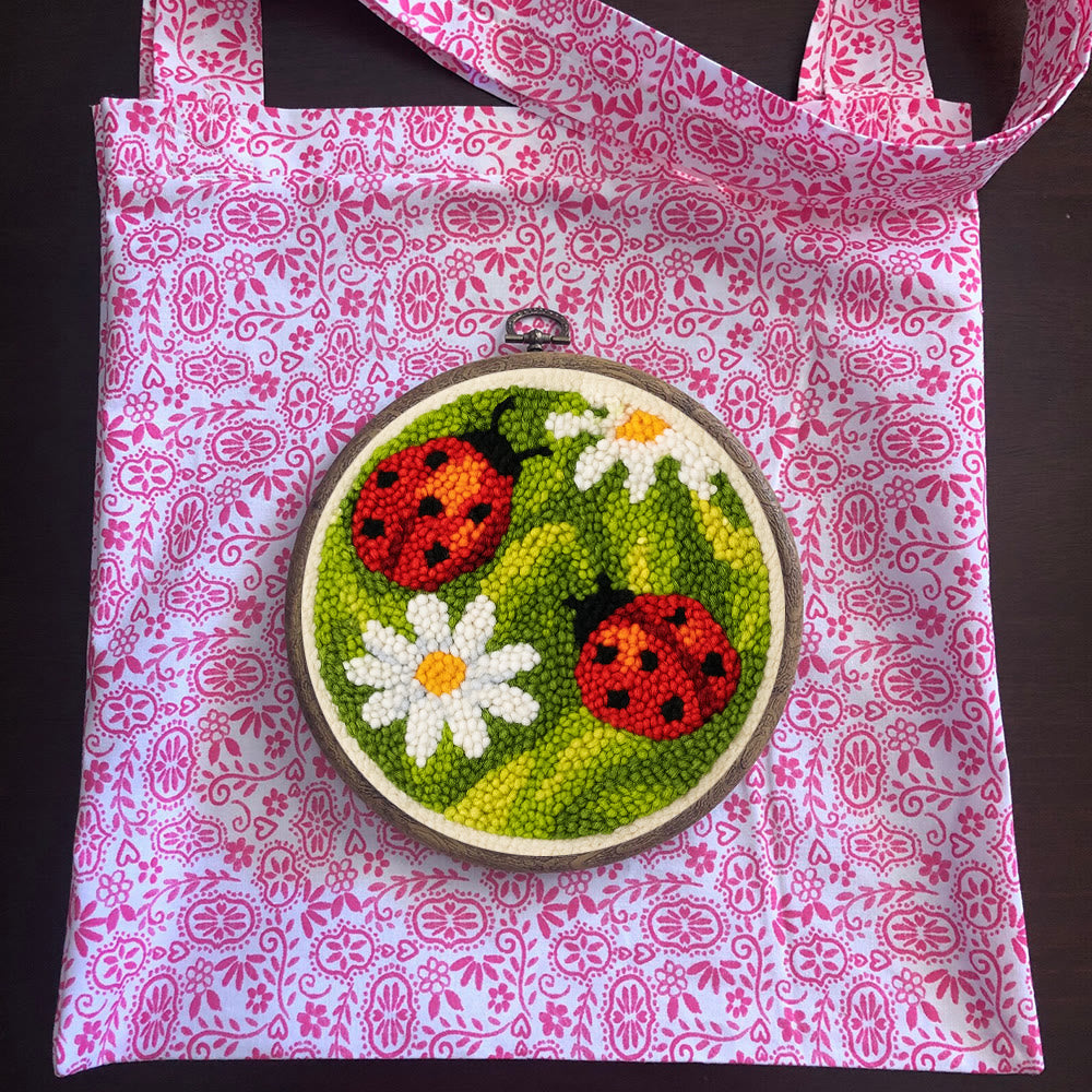 Blooming Flower With Bug Punch Needle Kit - Diy Insect Craft | Nice Home Ornament