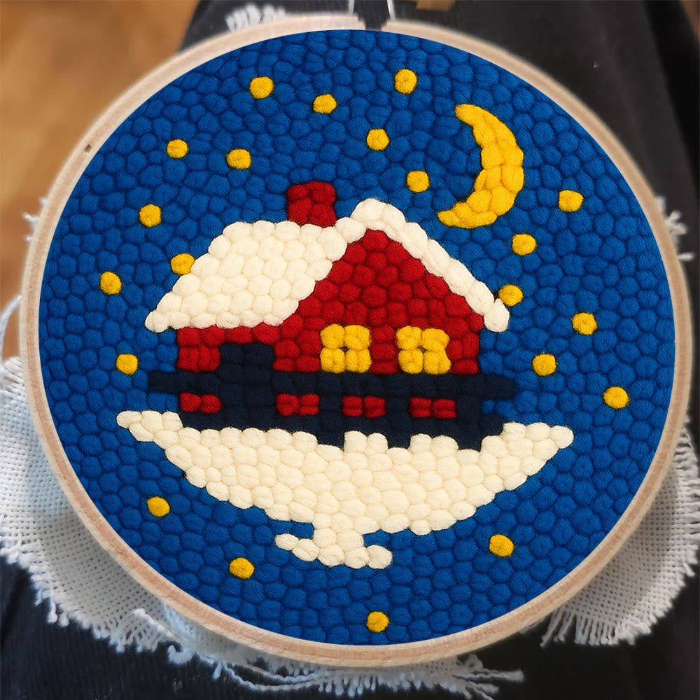 Starry Winter Snow Cottage Punch Needle – Embroidery Craft Kit | Charming Winter Gift